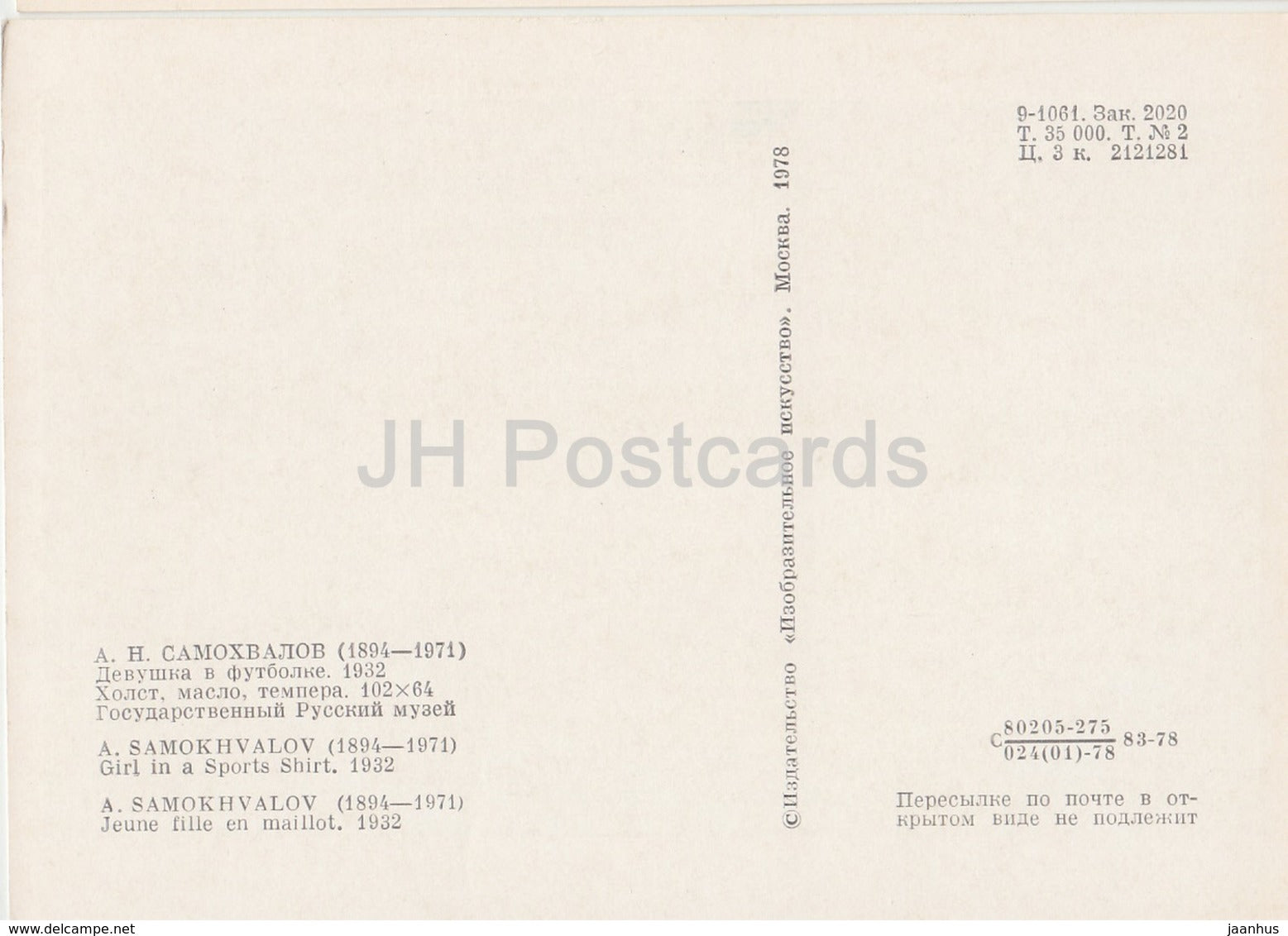 painting by A. Samokhalov - Girl in a Sports Shirt - Sport - Soviet art - 1978 - Russia USSR - unused