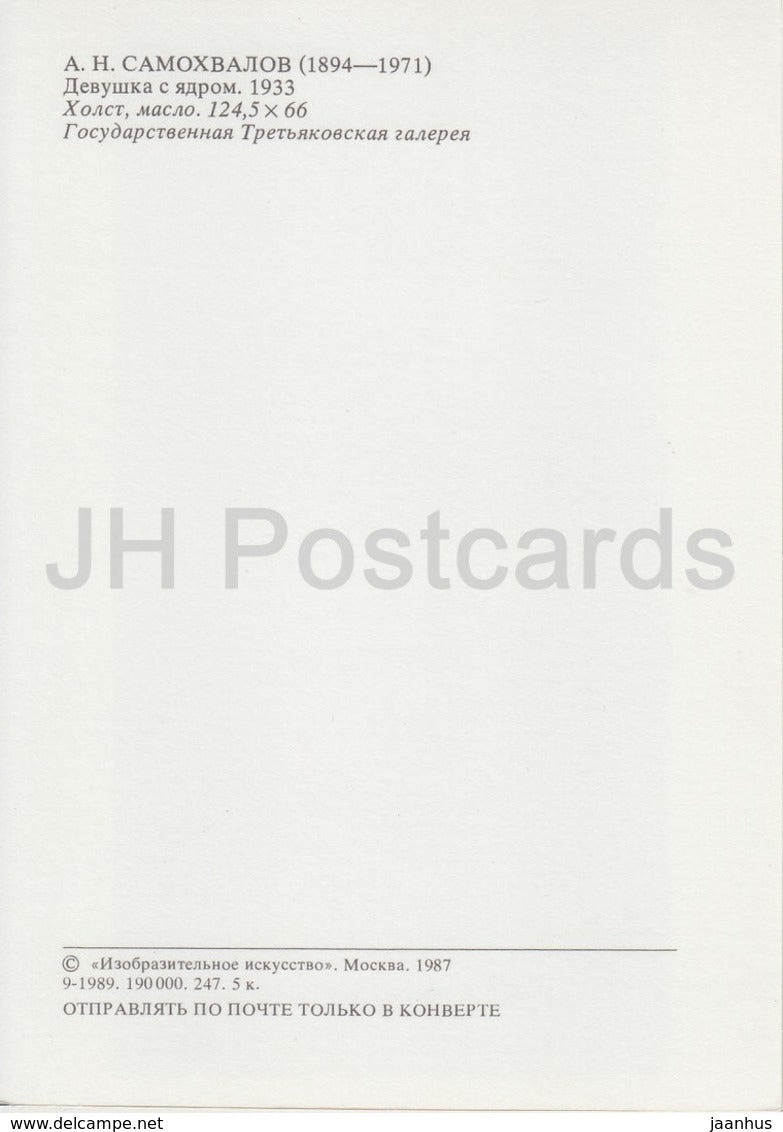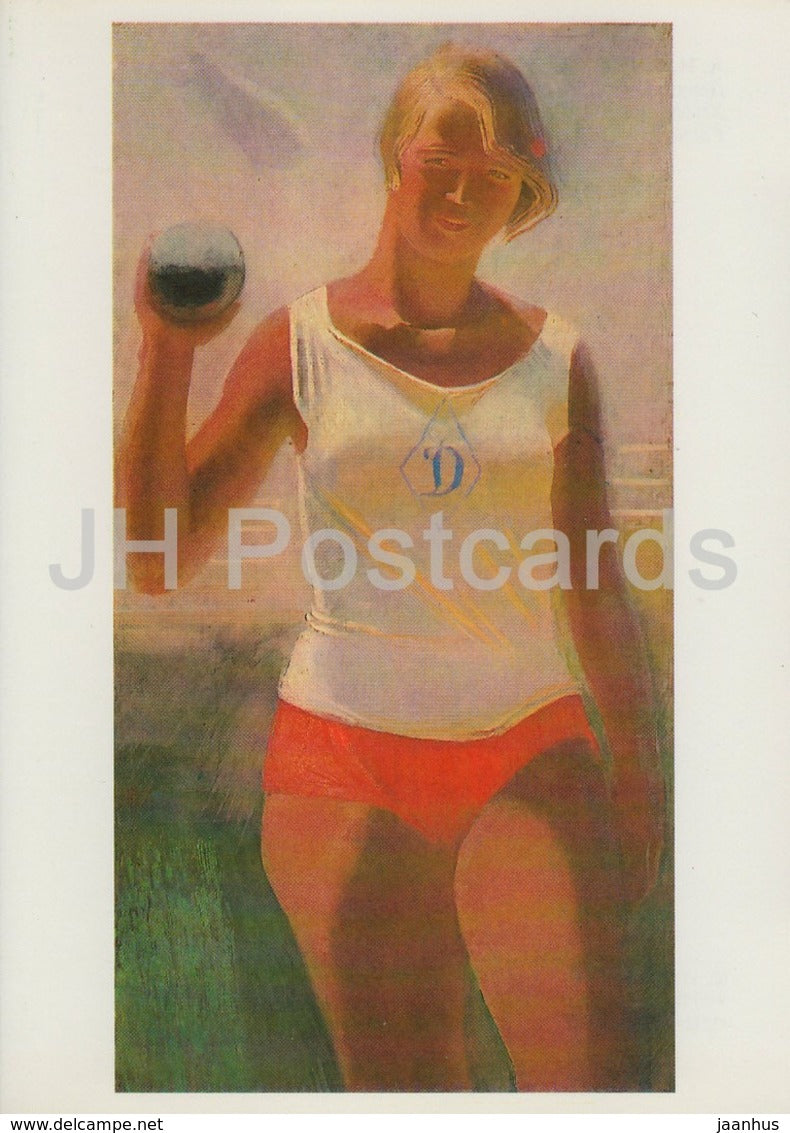 painting by A. Samokhvalov - Girl with a Shot - shot put - sport - Russian art - 1987 - Russia USSR - unused