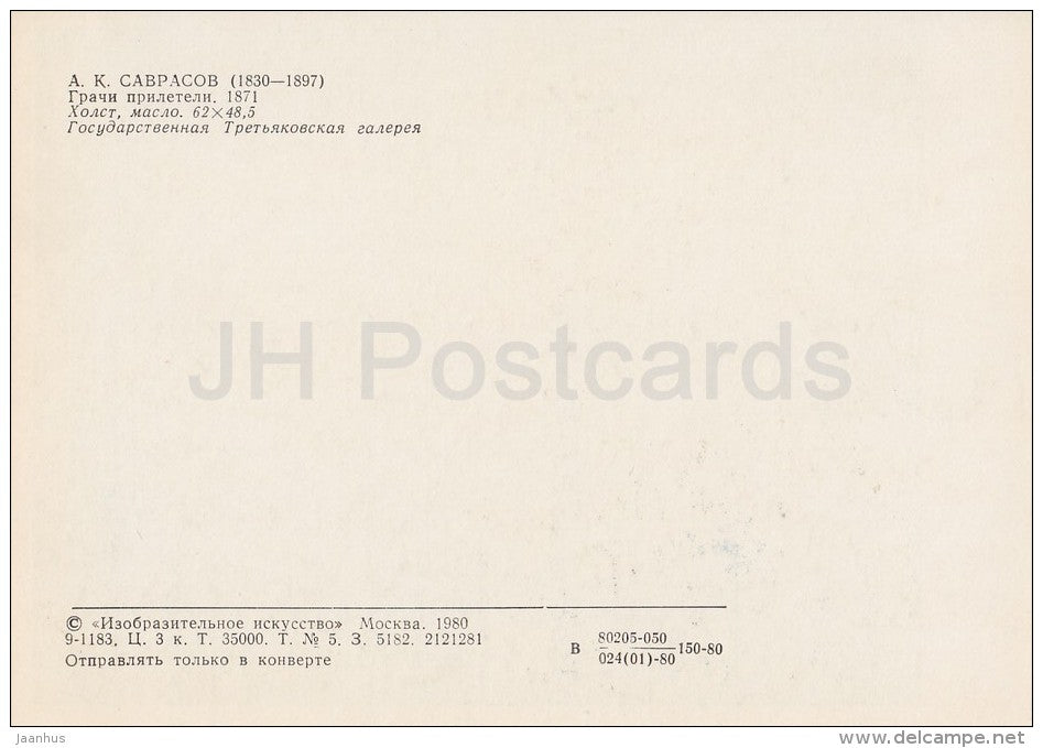 painting by A. Savrasov - Rooks flew in , 1871 - church - birch trees - Russian art - 1980 - Russia USSR - unused