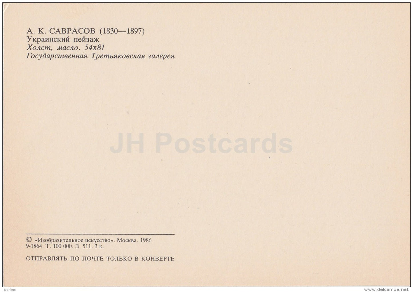 painting by A. Savrasov - Ukrainian landscape - Russian art - 1986 - Russia USSR - unused