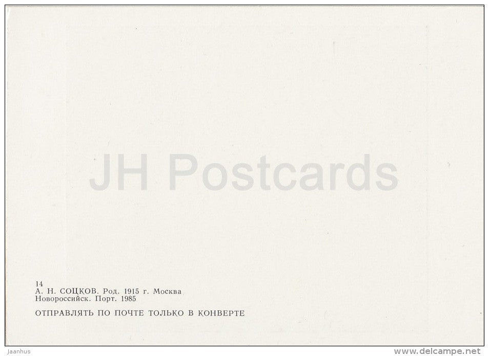 painting by A. Sotskov - Novorossiysk . Port , 1985 - Russian art - Russia USSR - 1987 - unused