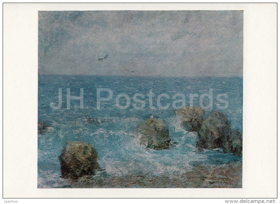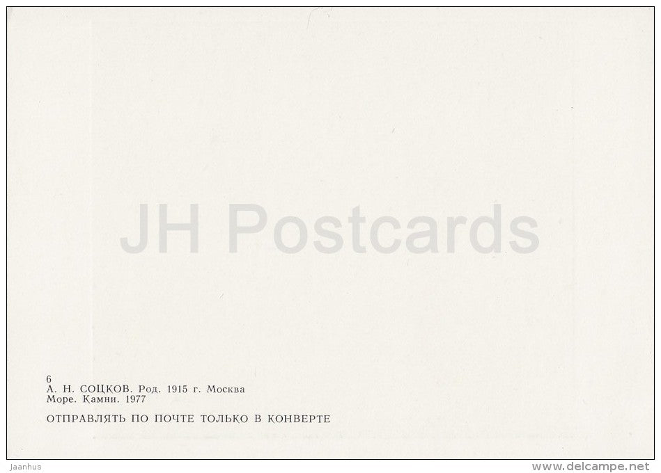 painting by A. Sotskov - The Sea . Rocks , 1977 - Russian art - Russia USSR - 1987 - unused