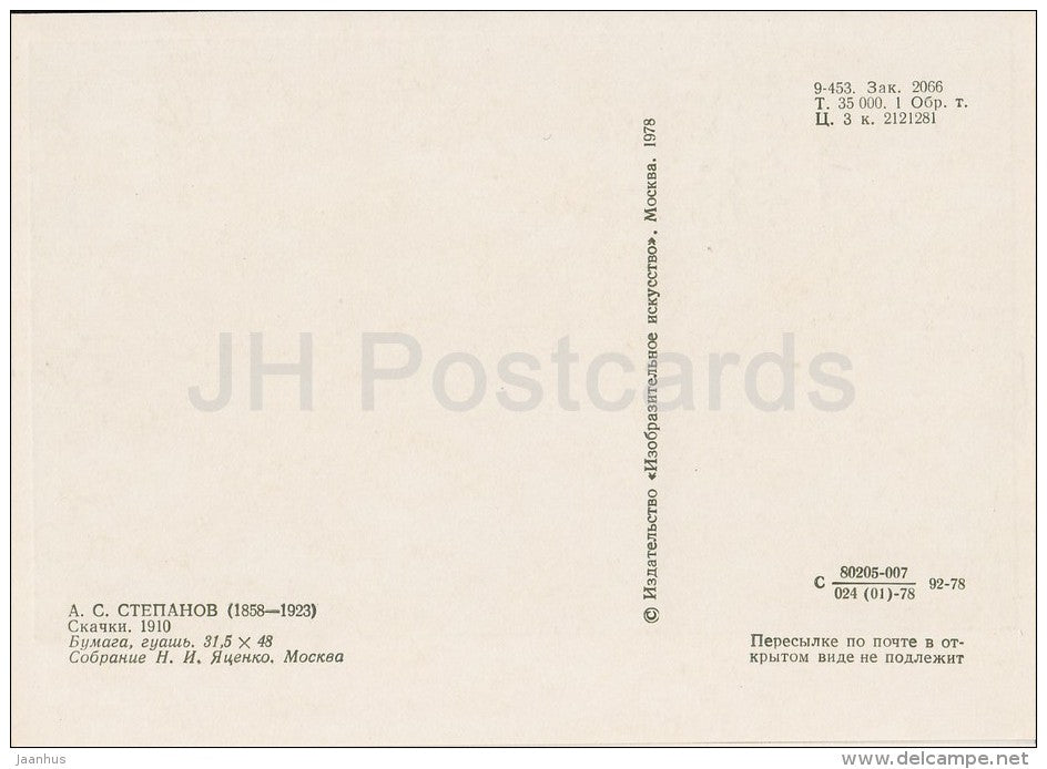 painting by A. Stepanov - Horserace , 1910 - Russian art - Russia USSR - 1978 - unused