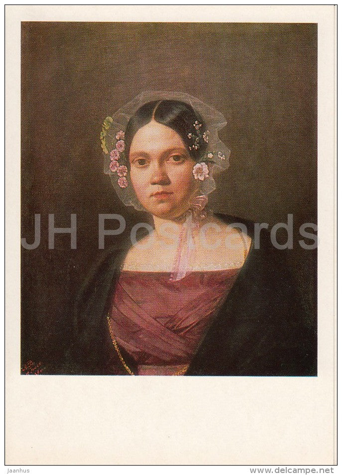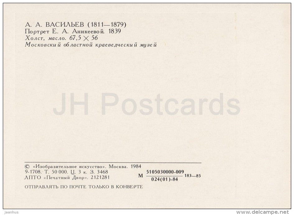 painting by A. Vasilyev - Portrait of E. Anikeyeva , 1839 - woman - Russian art - Russia USSR - 1984 - unused