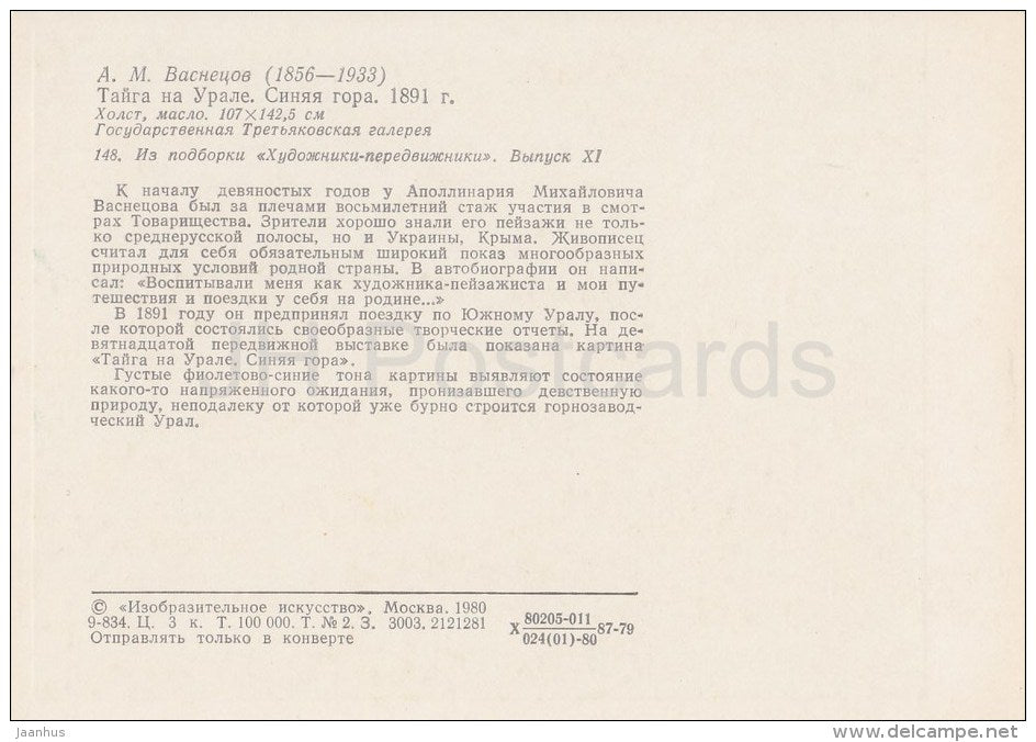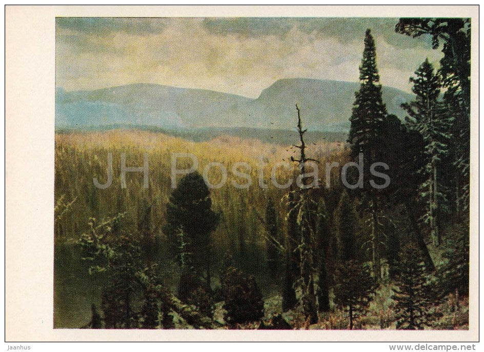 painting by A. Vasnetsov - Taiga in Ural mountains . Sinaya Gora , 1891 - Russian art - 1980 - Russia USSR - unused