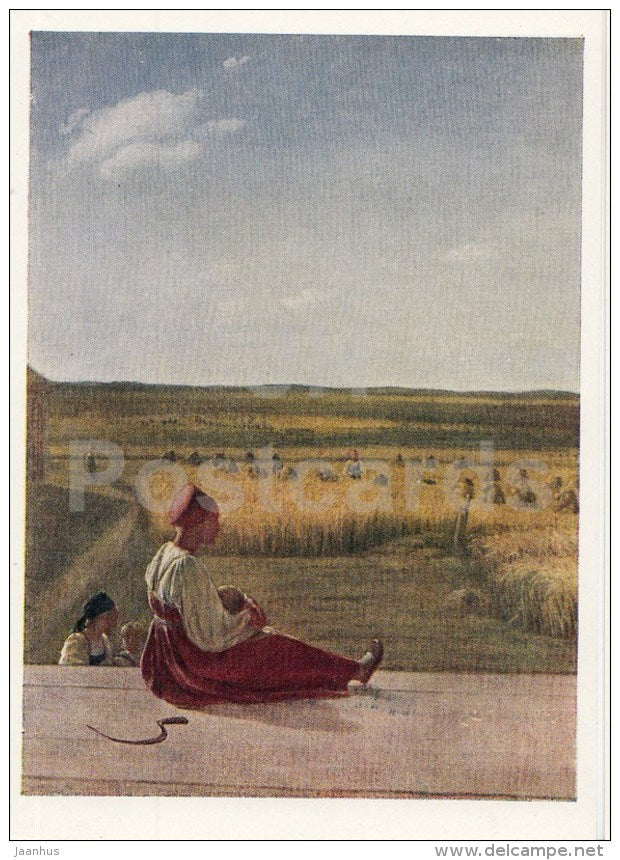 painting by A. Venetsianov - On the Harvest . The Summer - sickle - woman - Russian Art - 1964 - Russia USSR - unused