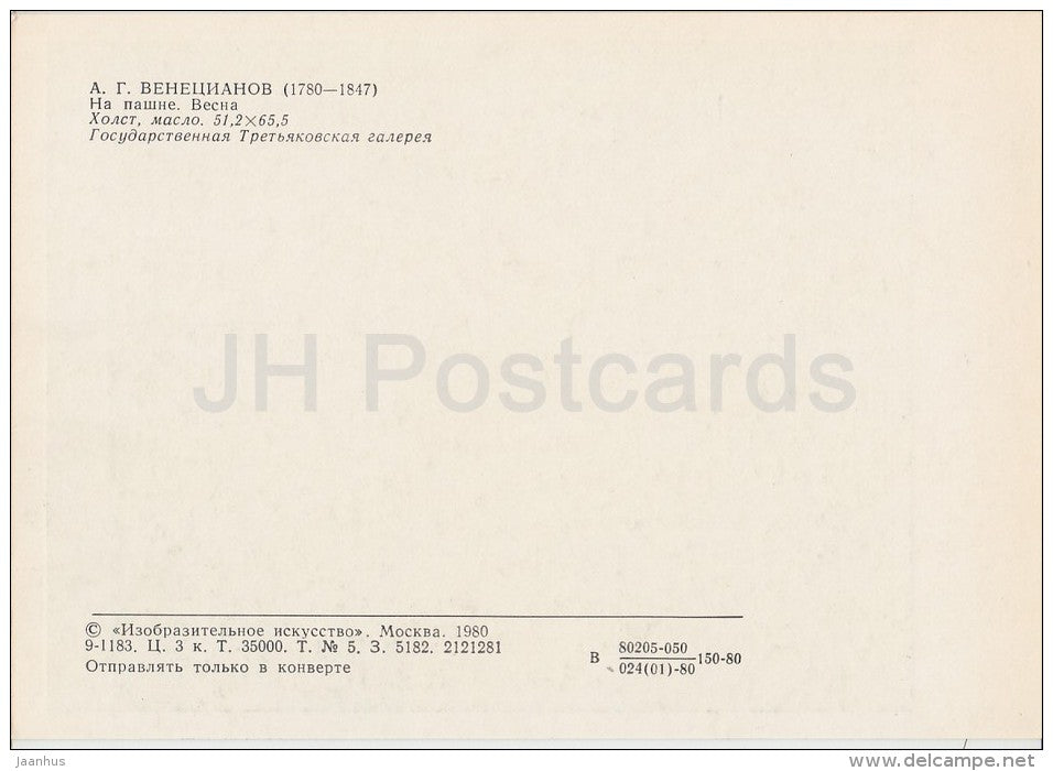 painting by A. Venetsianov - Plow . Spring - woman - horse - Russian art - 1980 - Russia USSR - unused