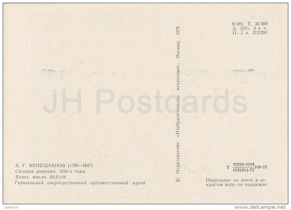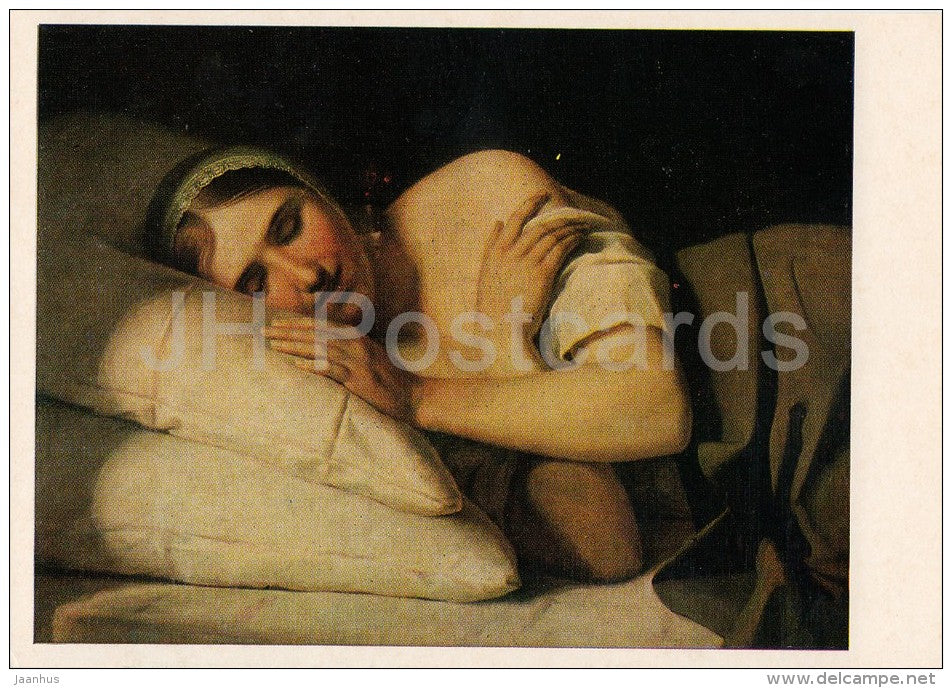 painting by A. Venetsianov - Sleeping Girl , 1840s - Russian art - 1975 - Russia USSR - unused
