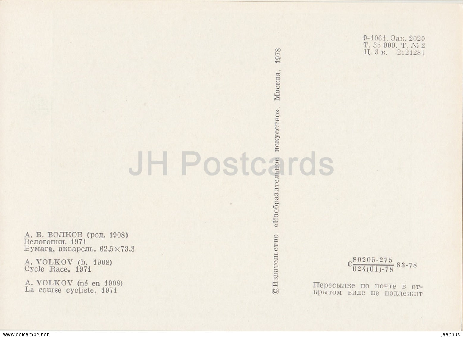 painting by A. Volkov - Cycle Race - bicycle - Sport - Soviet art - 1978 - Russia USSR - unused