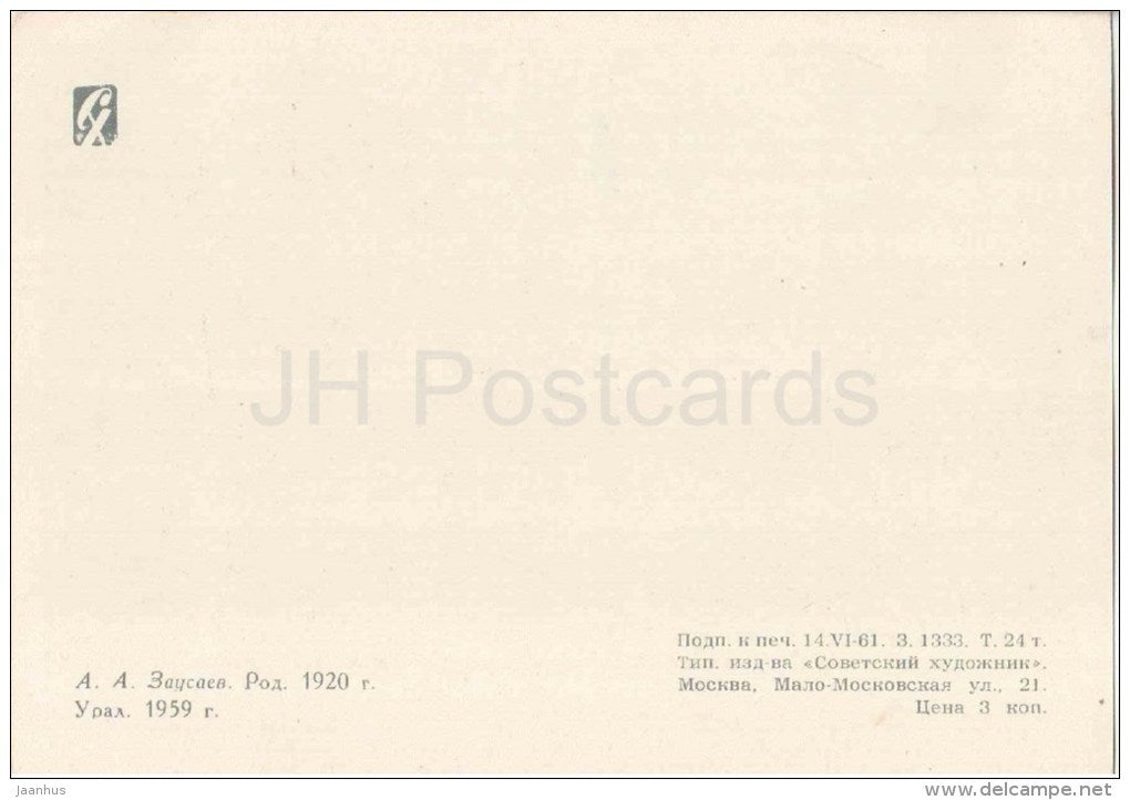 painting by A. Zausaev - Ural , 1959 - rocks - russian art - unused
