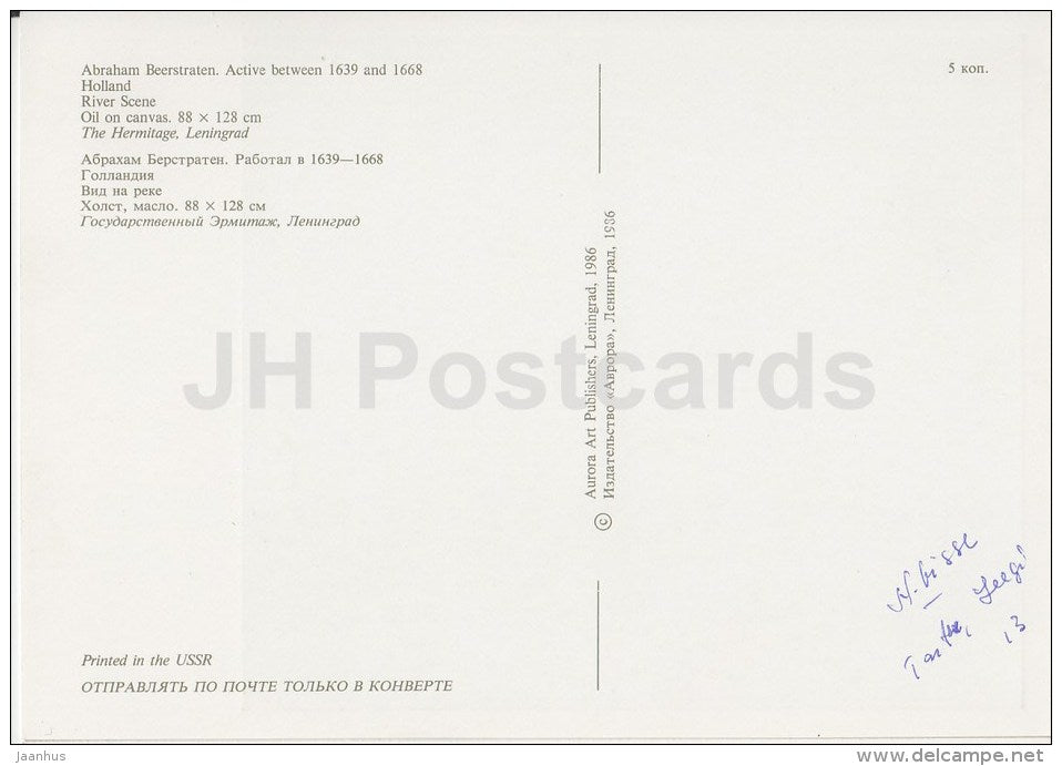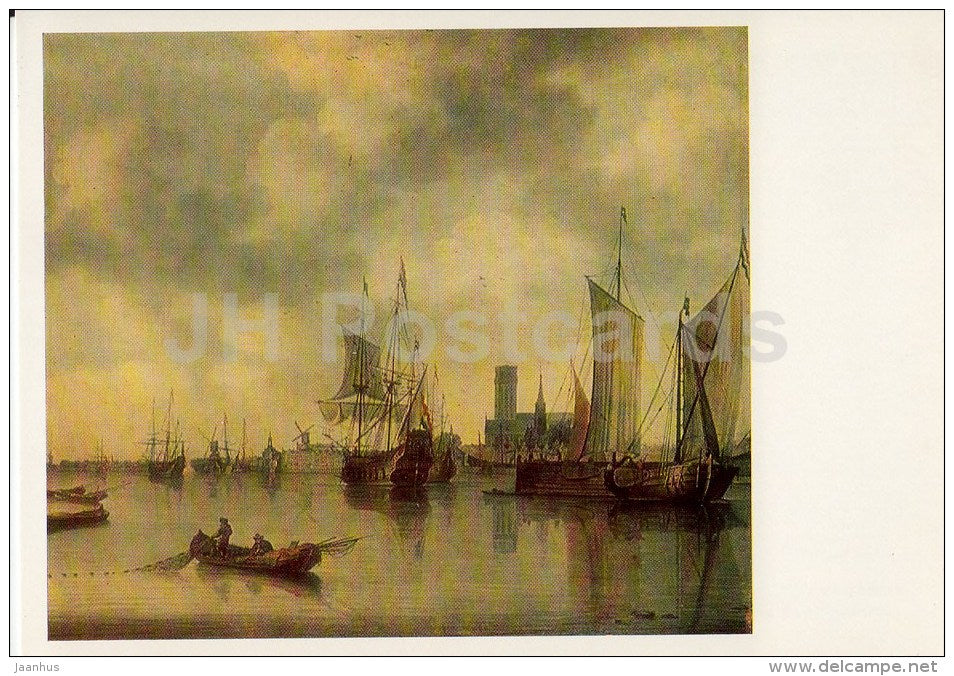 painting by Abraham Beerstraten - River Scene - sailing boat - Dutch art - 1986 - Russia USSR - unused