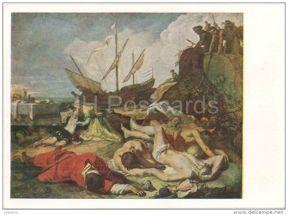 painting by Abraham Bloemaert - Charikleia and Theagenes , 1625 - sailing ship - dutch art - unused