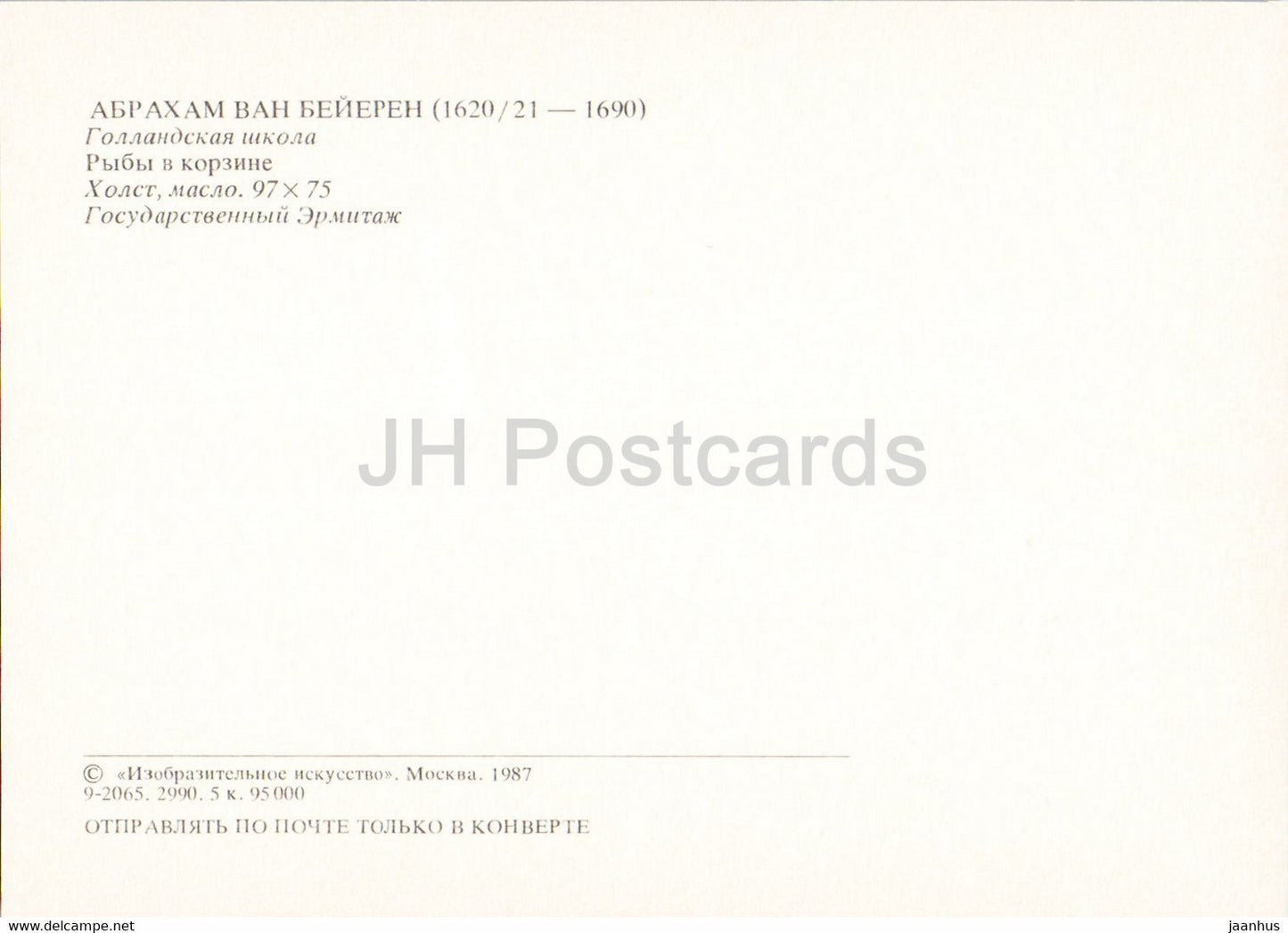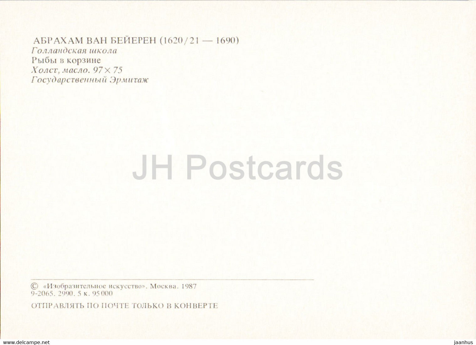 painting by Abraham van Beijeren - Fishes in a Basket - Dutch art - 1987 - Russia USSR - unused