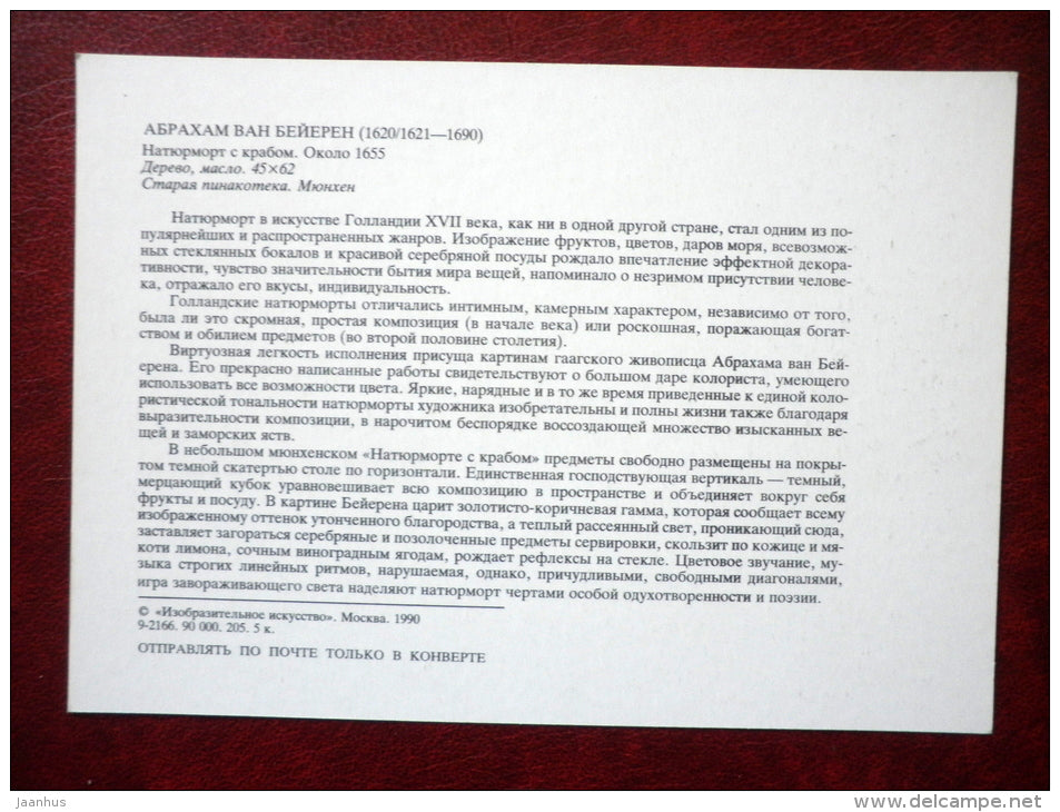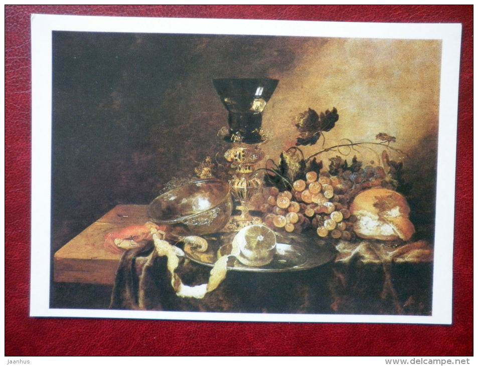 painting by Abraham van Beijeren - Still life with crab , 1655 - grapes - dutch art - unused