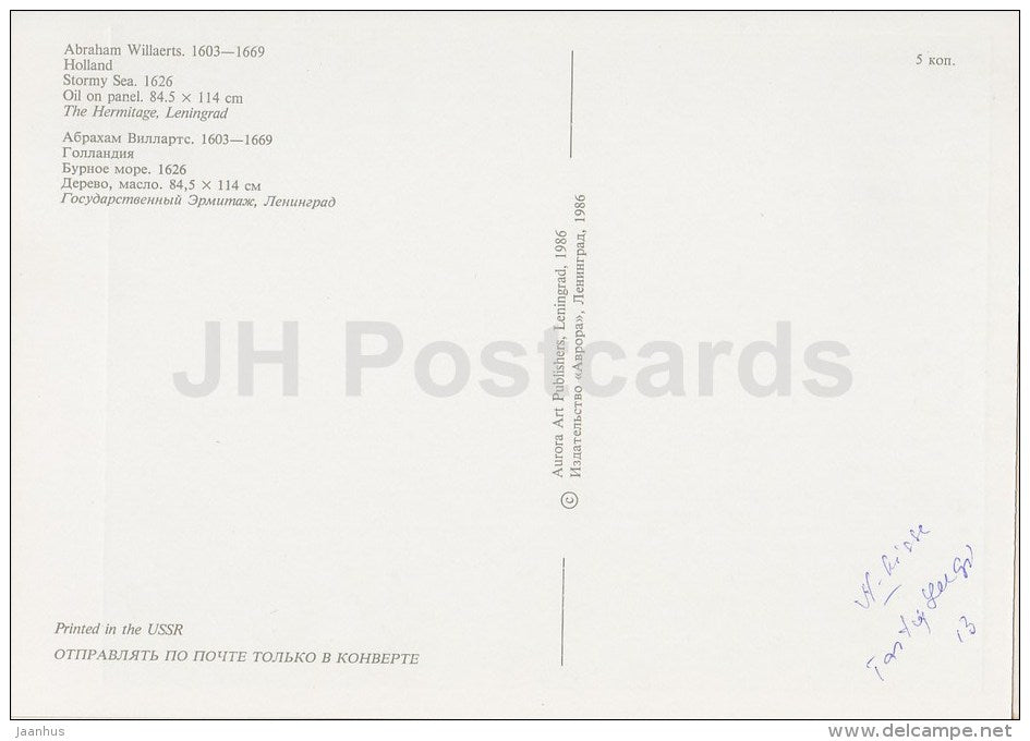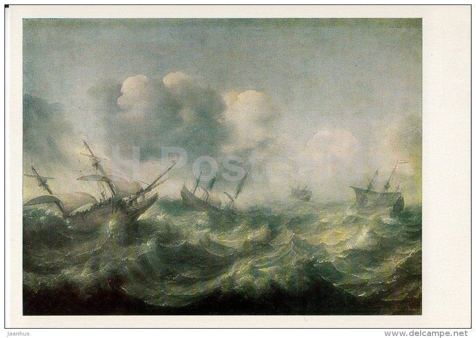 painting by Abraham Willaerts - Stormy Sea , 1626 - sailing boat - Dutch art - 1986 - Russia USSR - unused