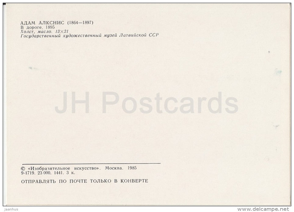 painting by Adam Alksnis - On the Road , 1895 - horse carriage - Latvian art - Russia USSR - 1985 - unused