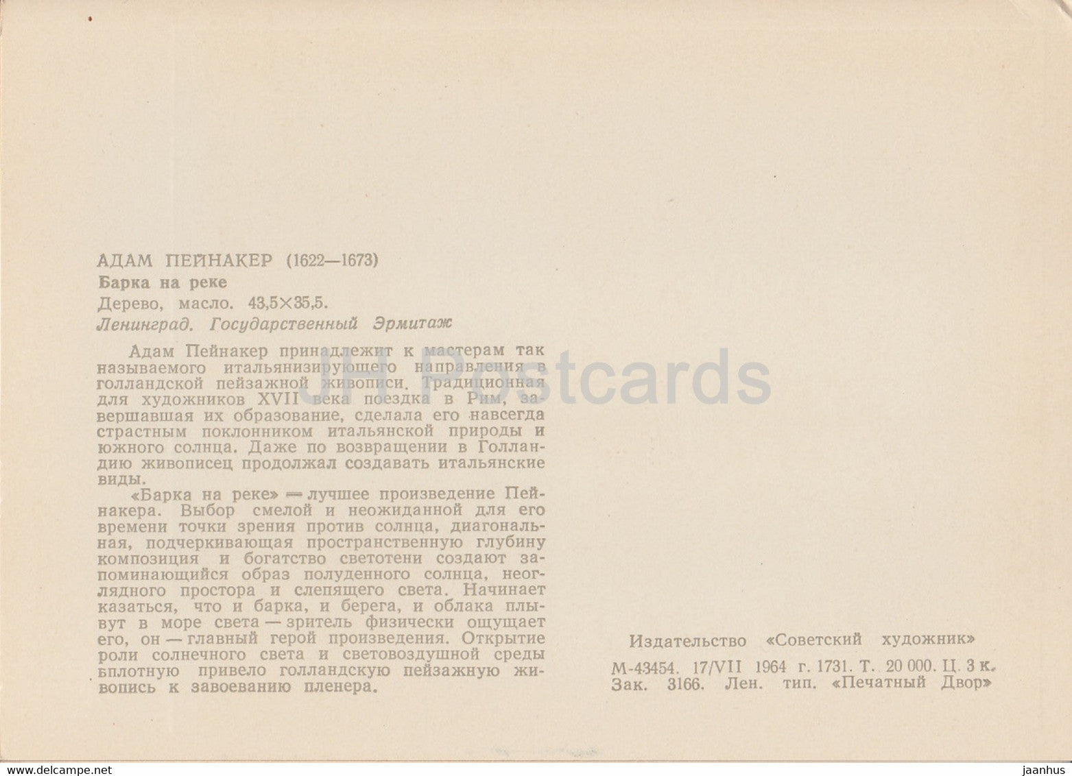 painting by Adam Pynacker - Barge on the river - Dutch art - 1964 - Russia USSR - unused