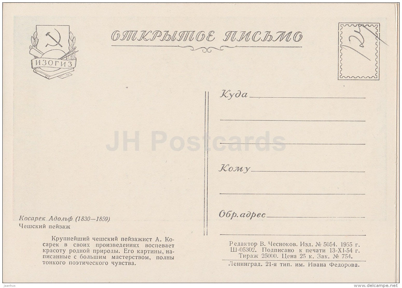 painting by Adolf Kosarek - Czech landscape - Czech art - 1955 - Russia USSR - unused