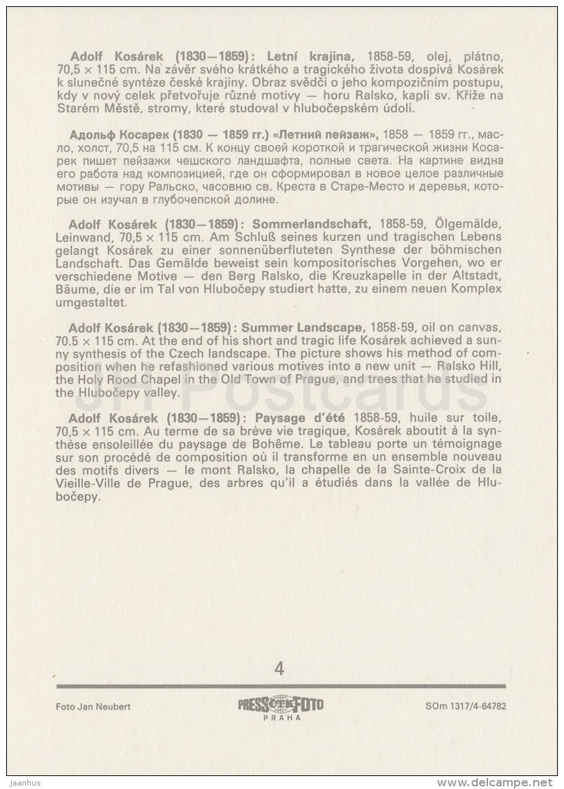 painting by Adolf Kosarek - Summer Landscape 1858-59 - Czech art - large format card - Czech - unused