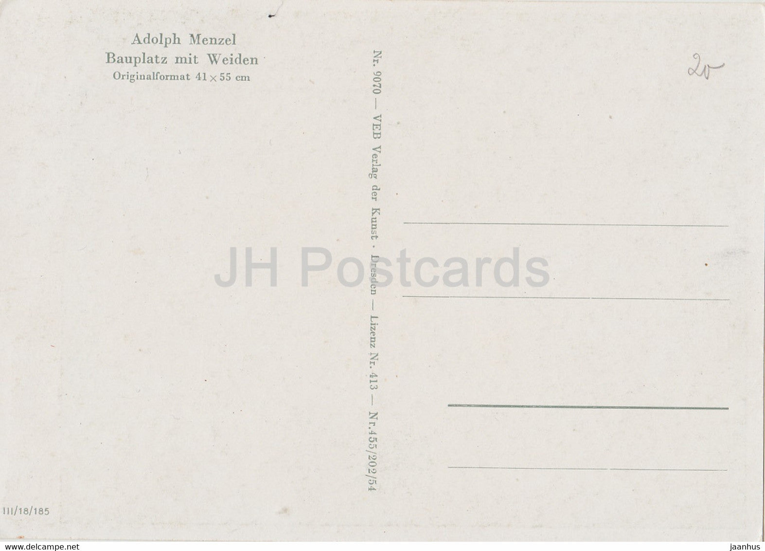 painting by Adolph Menzel - Bauplatz mit Weiden - Building site with willows - 9070 - German art - Germany - unused