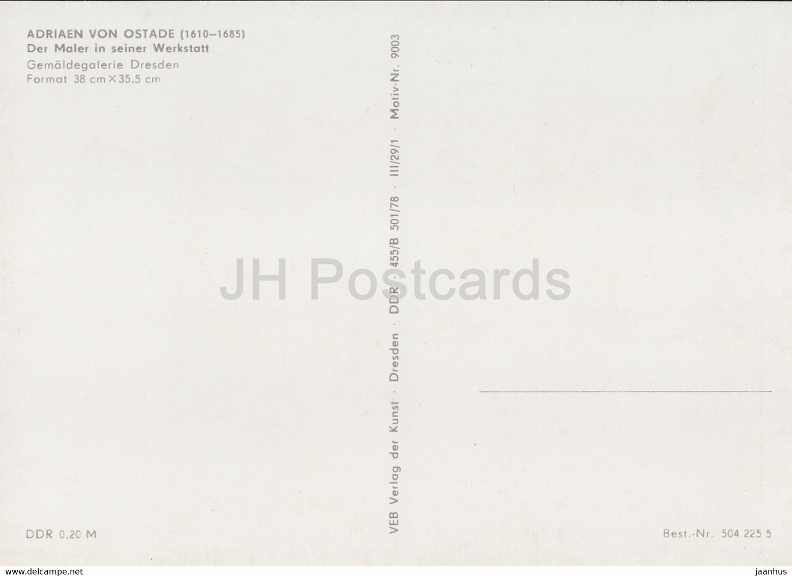 painting by Adriaen van Ostade - Der Maler in seiner Werkstatt - Artist in Workshop - Dutch art - Germany DDR - unused