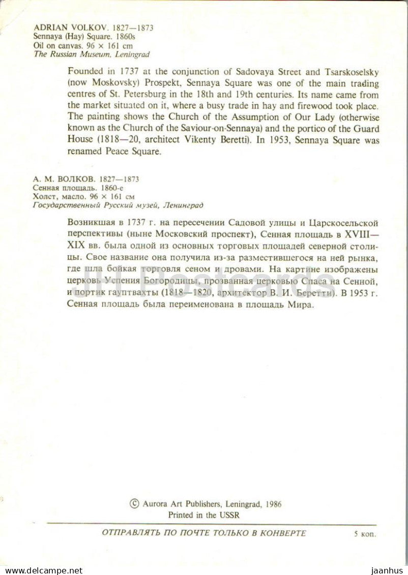 painting by Adrian Volkov - Sennaya Square - Saint Petersburg - Russian art - 1986 - Russia USSR - unused