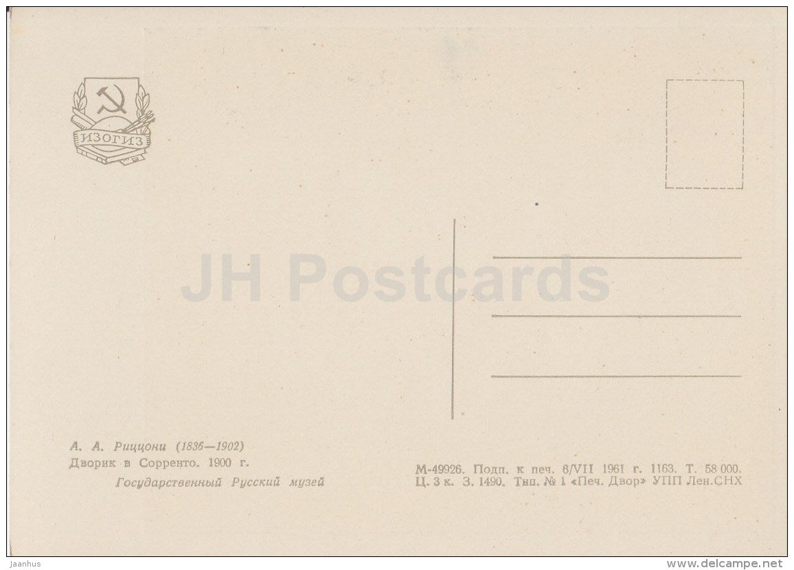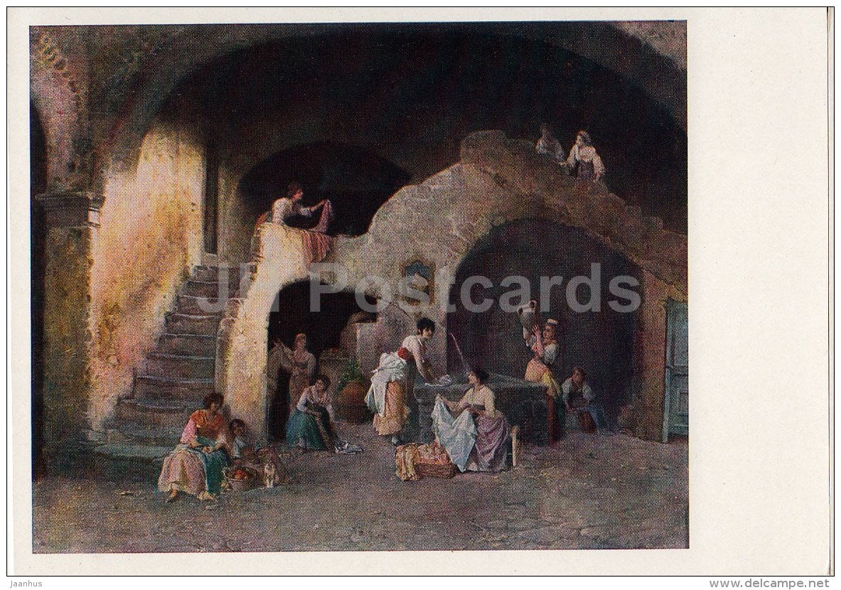 painting by Alexander Rizzoni - Courtyard in Sorrento - women - Russian art - Russia - 1961 - Russia USSR - unused