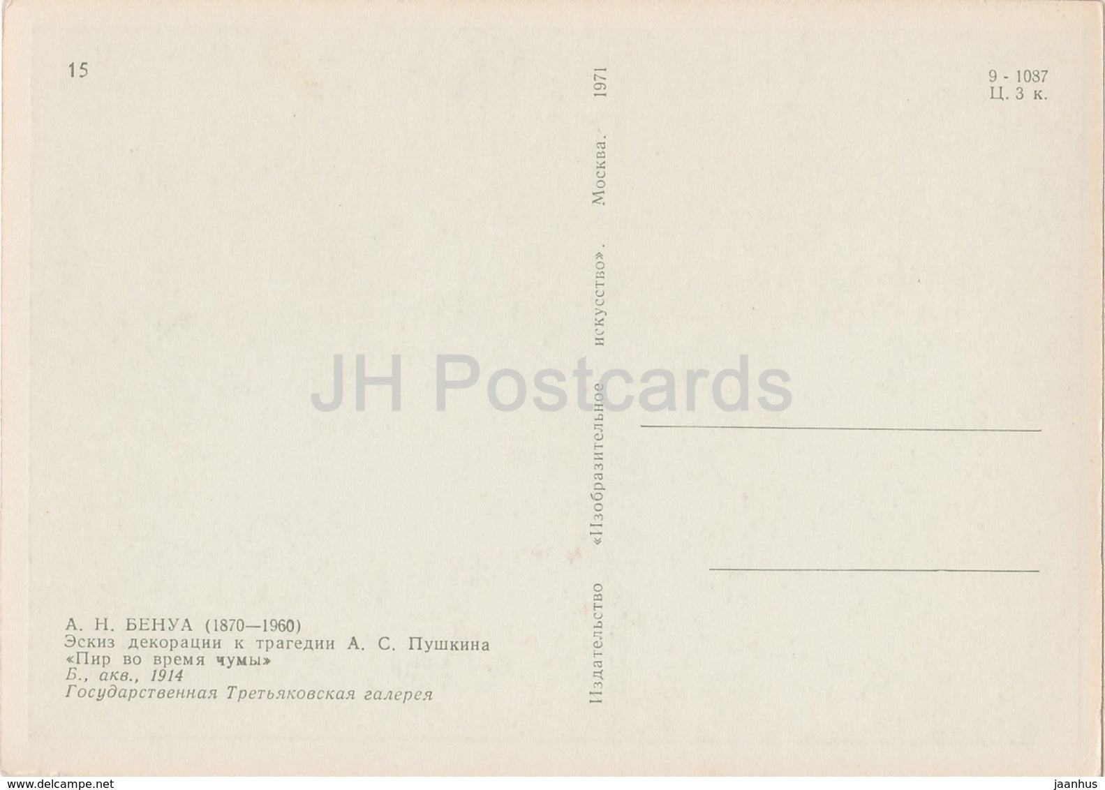 painting by Alexandre Benois - a sketch of scenery Feast during the Plague - Russian art - 1971 - Russia USSR - unused