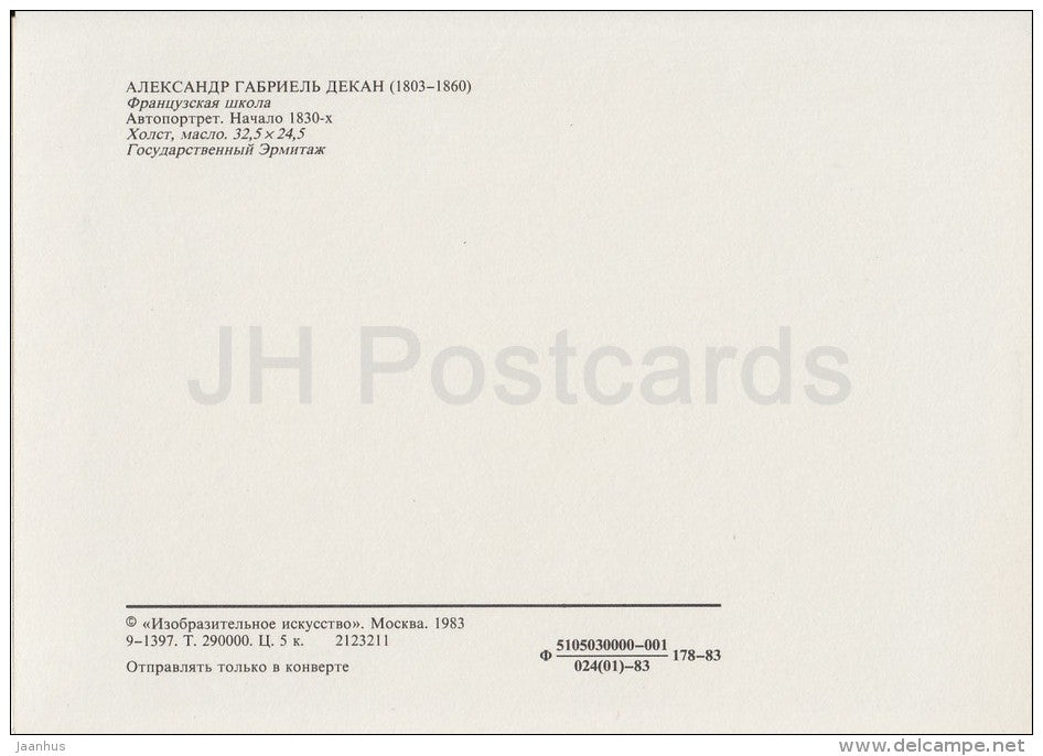 painting by Alexandre-Gabriel Decamps - Self-Portrait , 1830s - man - French art - Russia USSR - 1983 - unused