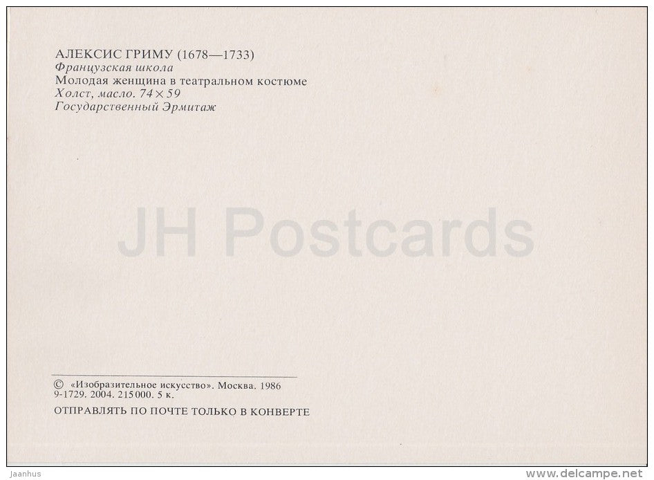 painting by Alexis Grimou - Young Lady in theatrical costume - French art - Russia USSR - 1986 - unused