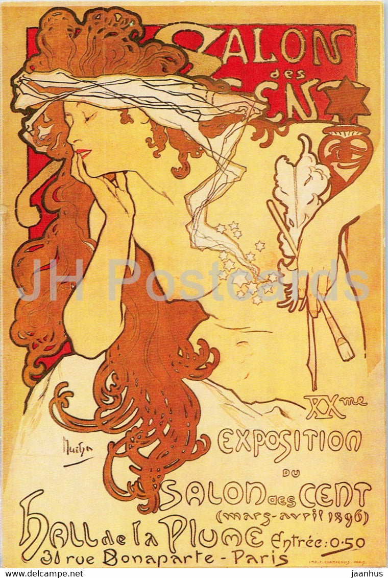 painting by Alfons Mucha - Plakat - Salon des Cent - Czech art - Germany - unused