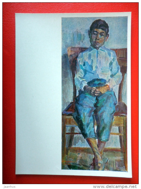 painting by Ali Dzhusupov . Portrait of the Son , 1963 - kazakhstan art - unused