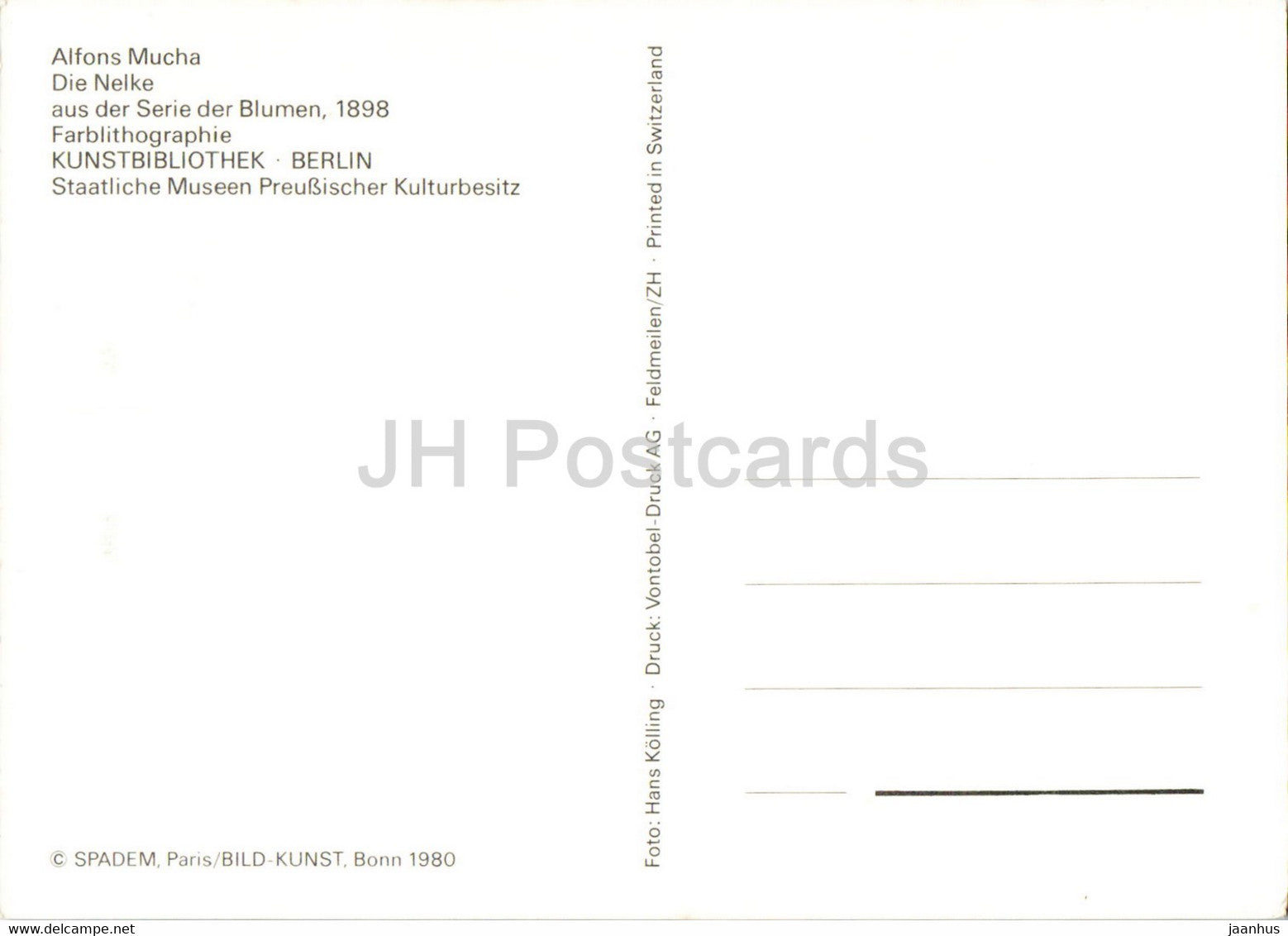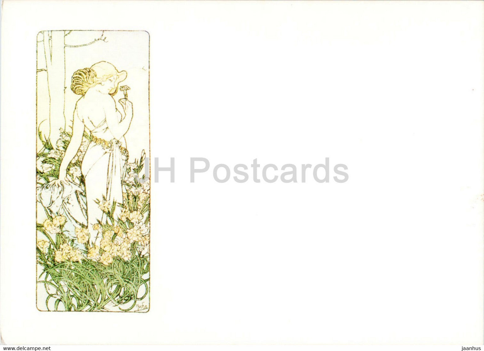 painting by Alphonse Mucha - Die Nelke - Art Nouveau - Czech art - Germany - unused