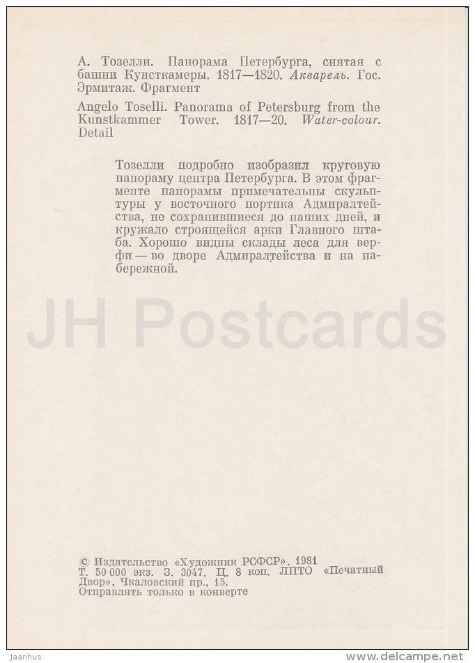 painting by Angelo Toselli - Panorama of Petersburg from the Kunstkammer - Italian art - Russia USSR - 1981 - unused