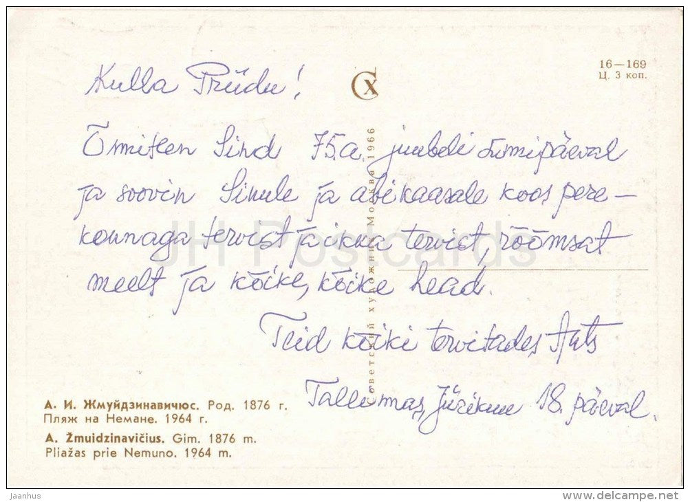 painting by Antanas ŽmuidzinaviÄius - Nemunas Beach , 1964 - river - lithuanian art - used
