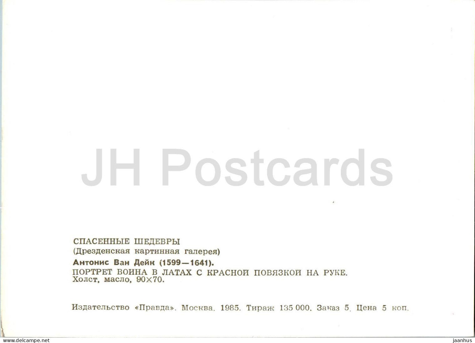 painting by Anthonis van Dyck - portrait of a warrior in armor - man - Flermish art - 1985 - Russia USSR - unused