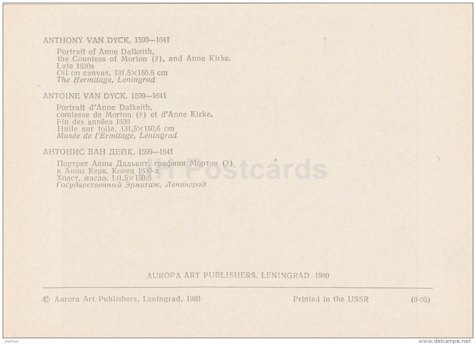 painting by Anthony van Dyck - Portrait of Anne Dalkeith - women - Flemish art - 1980 - Russia USSR - unused