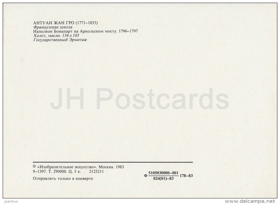 painting by Antoine-Jean Gros - Napoleon Bonaparte on the Arcole , 1796-97 - French art - Russia USSR - 1983 - unused