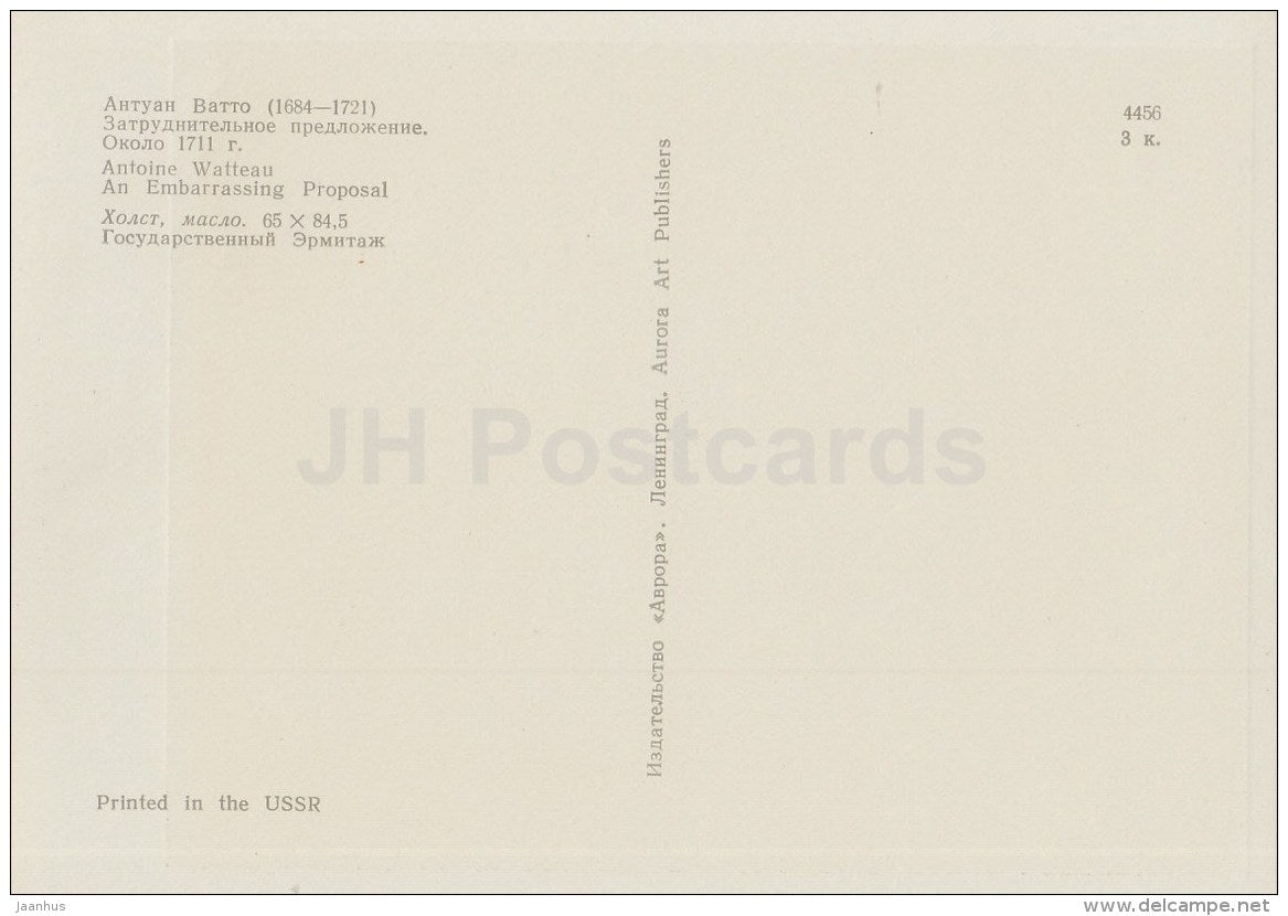 painting by Antoine Watteau - An Embarrassing Proposal - French Art - 1970 - Russia USSR - unused