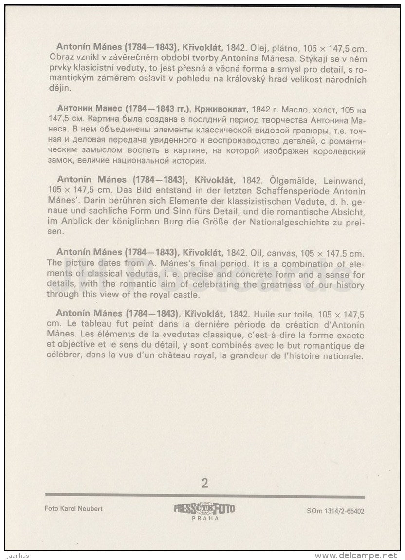 painting by Antonin Manes - Krivoklat , 1842 - Czech art - large format card - Czech - unused