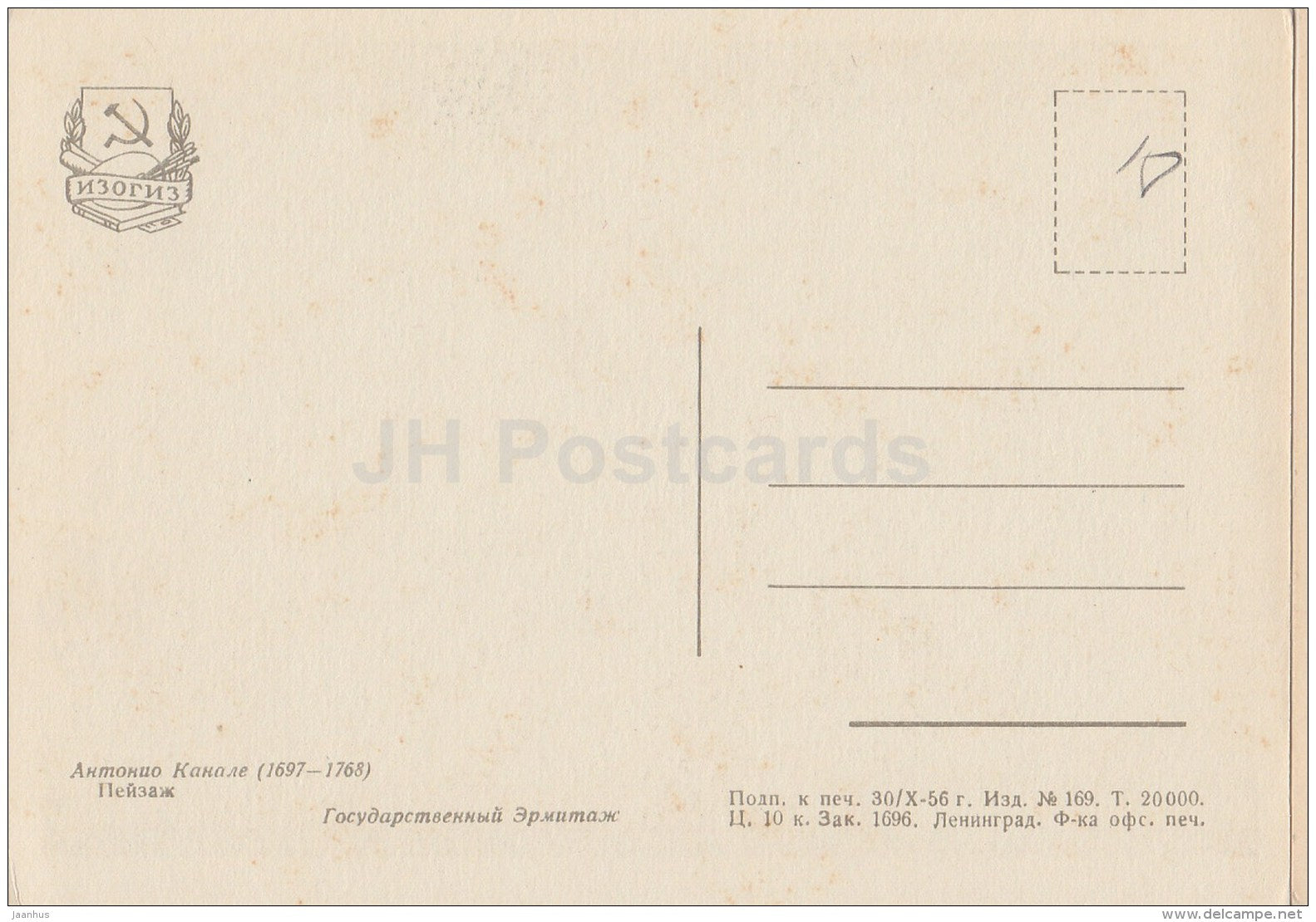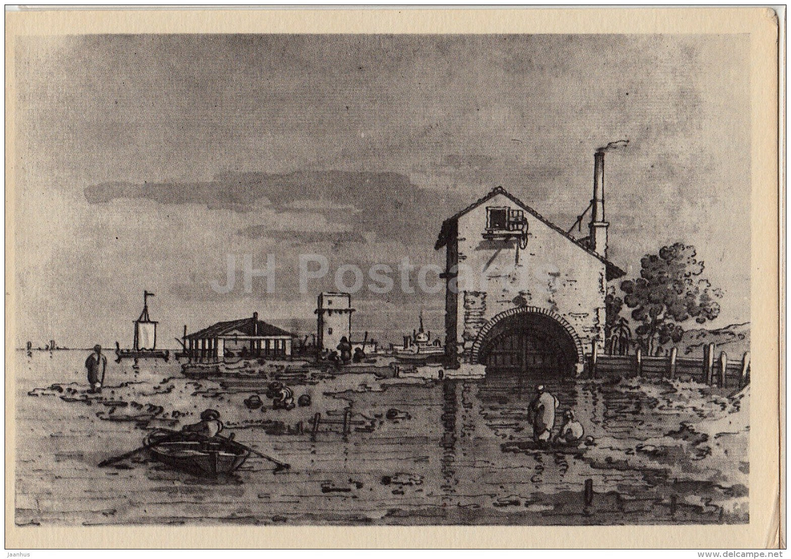 painting by Antonio Canale - Landscape - boat - Italian art - 1956 - Russia USSR - unused