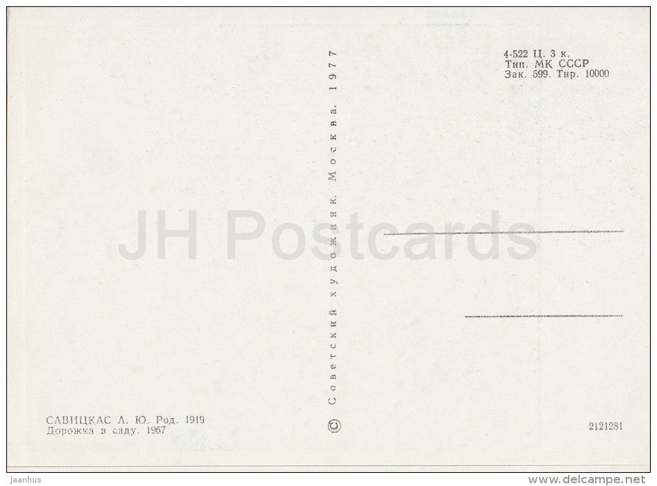painting by Augustinas Savickas - Road in the Garden , 1967 - Lithuanian art - 1977 - Russia USSR - unused