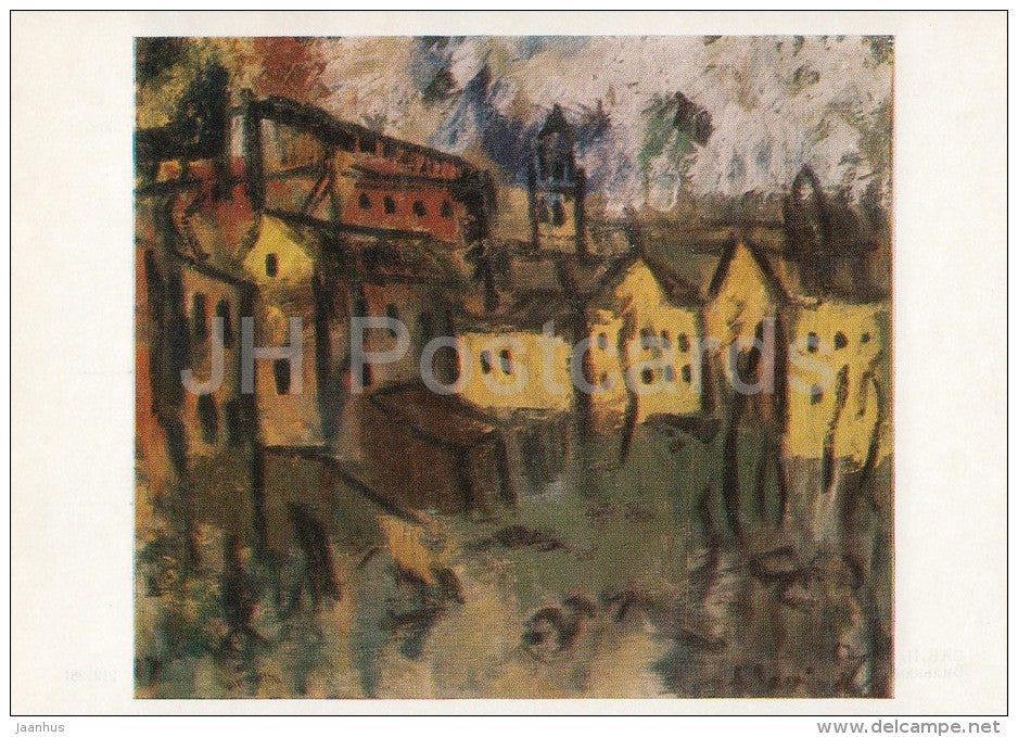 painting by Augustinas Savickas - Romantic Vilnius , 1967 - Lithuanian art - 1977 - Russia USSR - unused