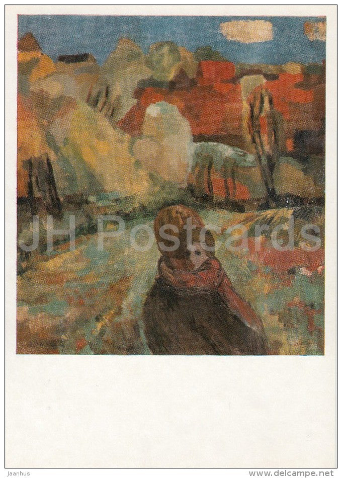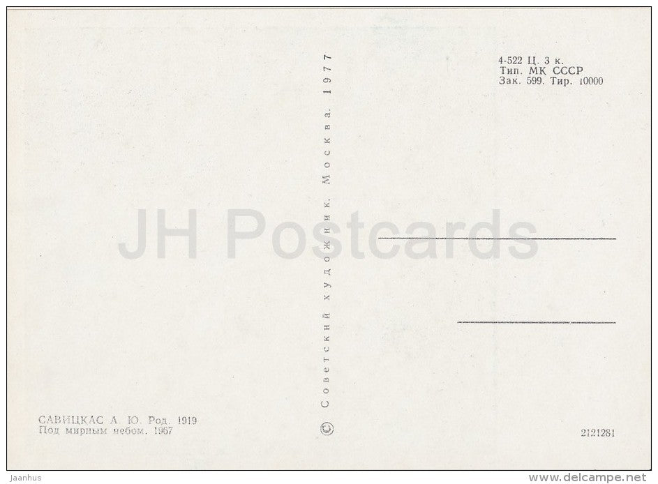 painting by Augustinas Savickas - Under the peaceful sky , 1967 - Lithuanian art - 1977 - Russia USSR - unused