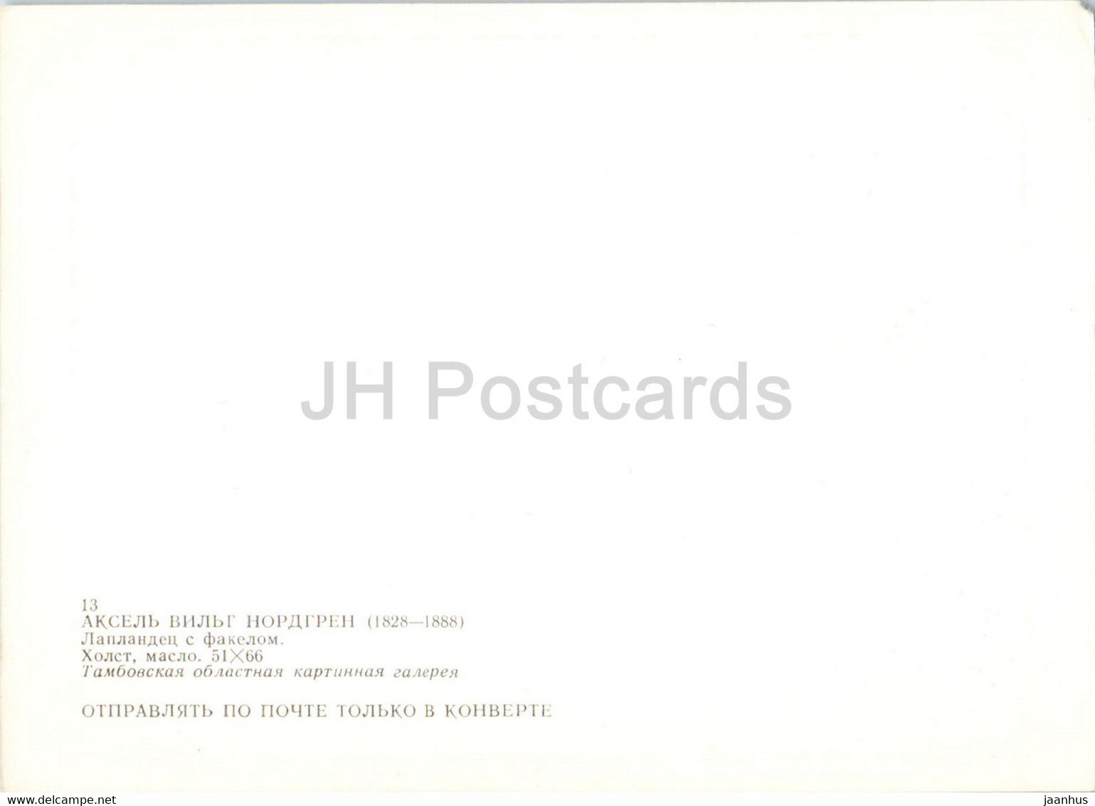 painting by Axel Nordgren - Laplander with a torch - Swedish Art - 1989 - Russia USSR - unused