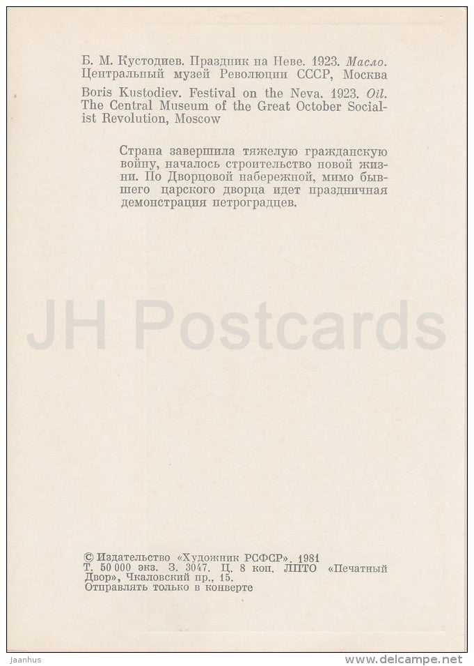 painting by B. Kustodiev - Festival on the Neva river , 1923 - Russian art - Russia USSR - 1981 - unused