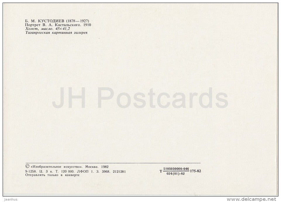 painting by B. Kustodiev - Portrait of V. Kastalsky , 1910 - man - Russian art - Russia USSR - 1982 - unused