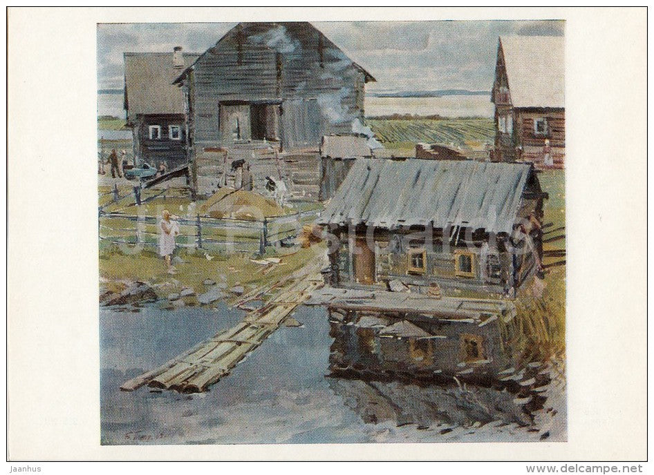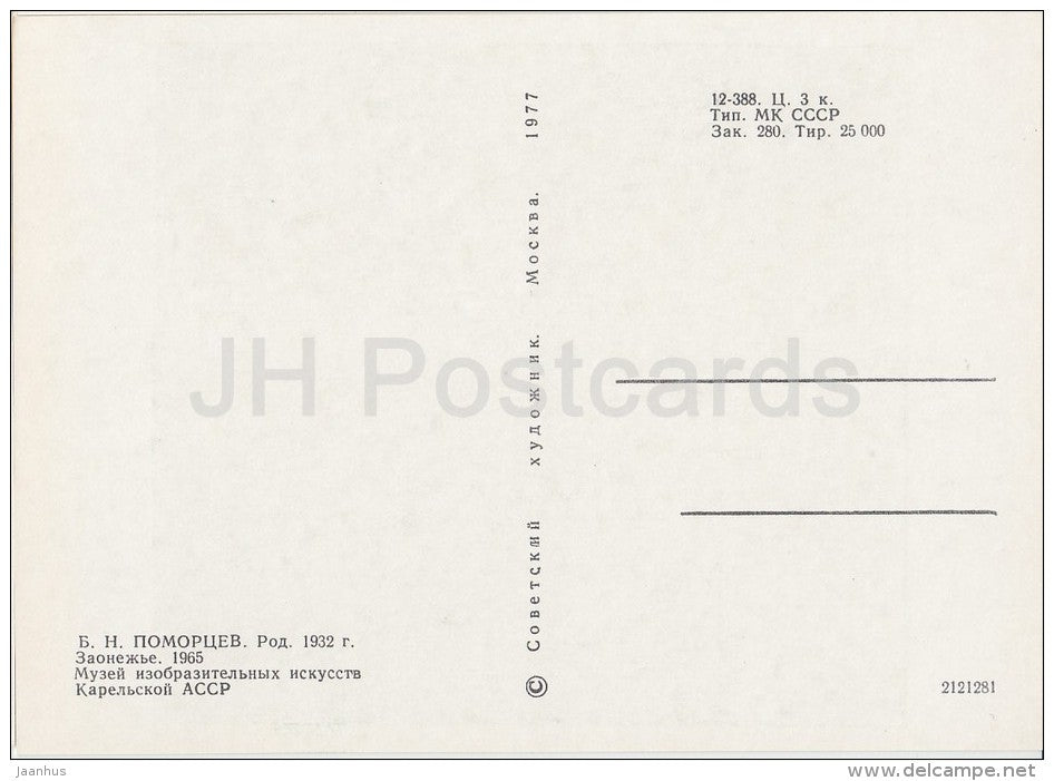 painting by B. Pomortsev - Zaonezhye , 1965 - buildings - Karjala - Karelian art - Russia USSR - 1977 - unused