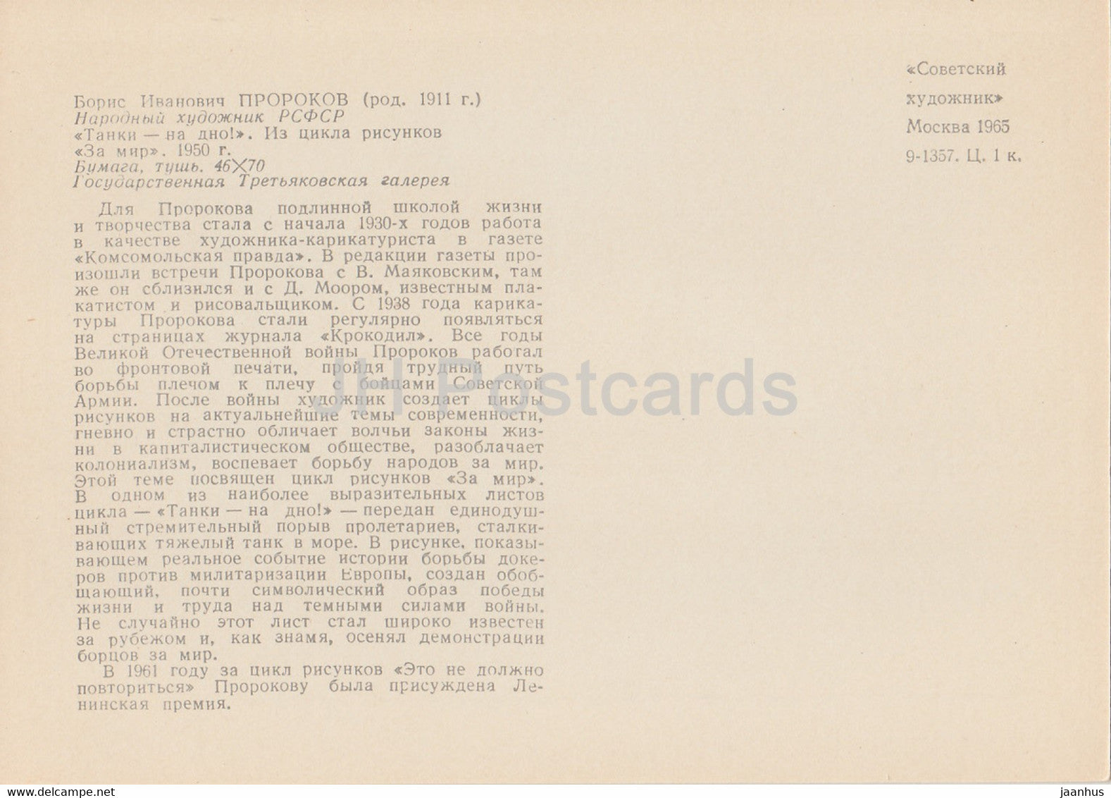 painting by B. Prorokov - Tanks to the bottom - tank - Russian art - 1965 - Russia USSR - unused