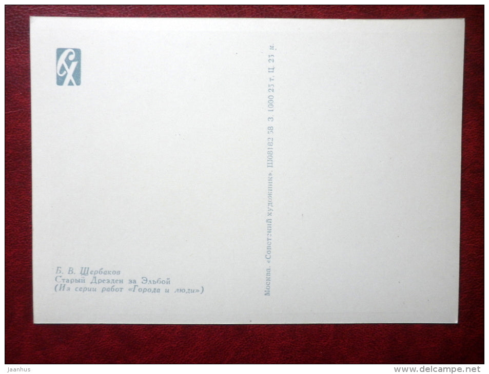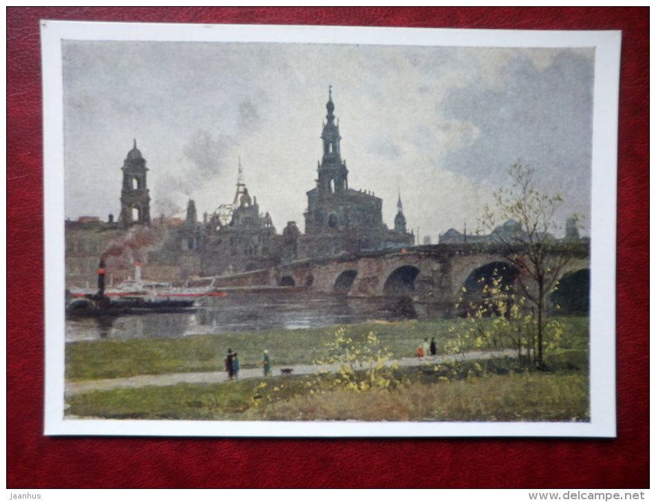 painting by B. Scherbakov - Old Dresden by Elbe - ship - boat - bridge - russian art - unused